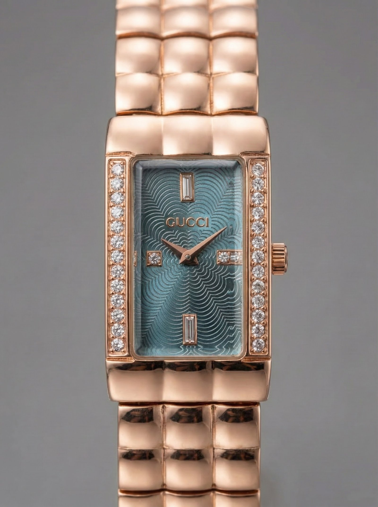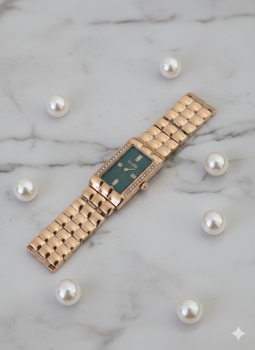 Turn heads with this stunning gold-tone watch featuring a rich emerald green dial and sparkling crystal frame 💚💎⌚